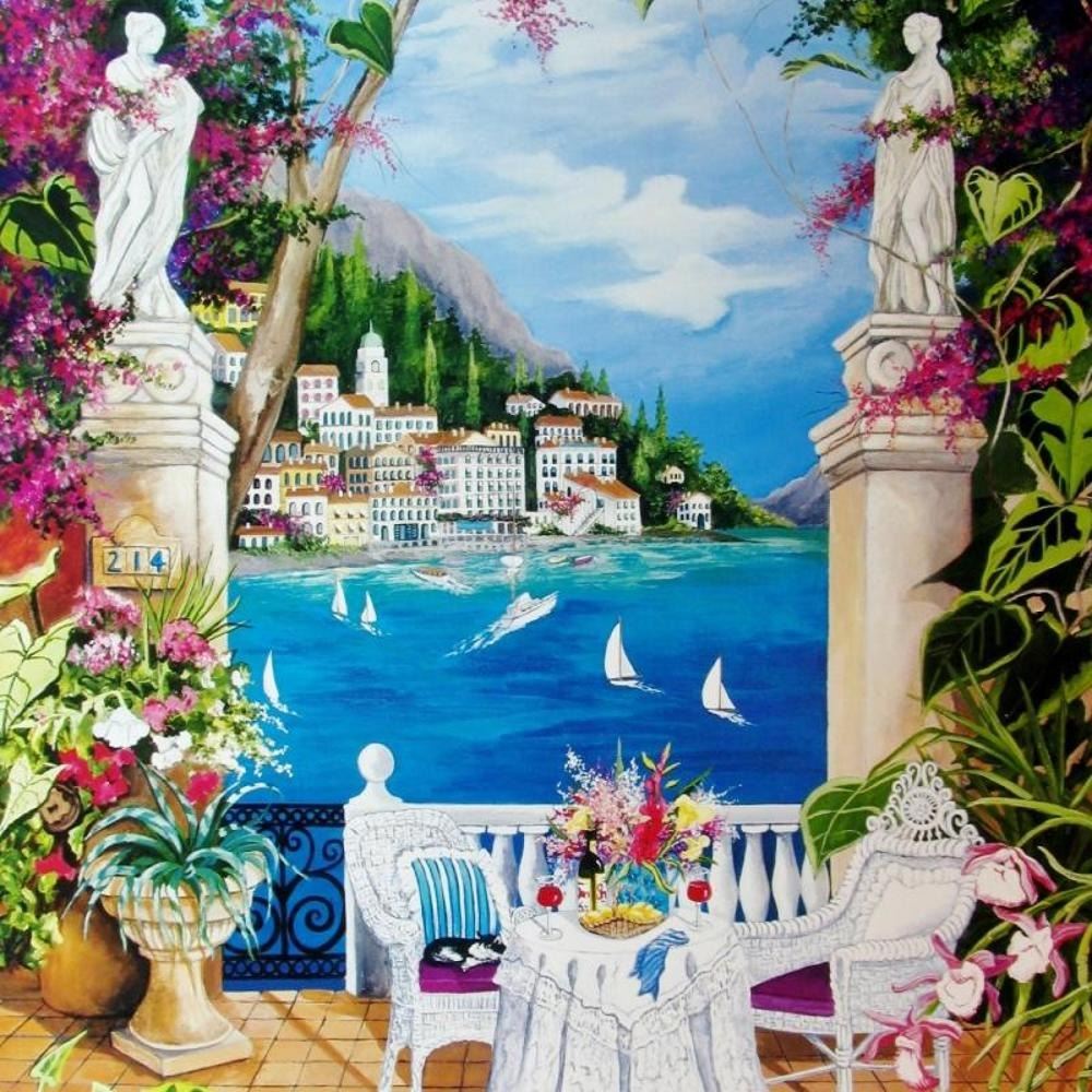 Shari Hatchett Bohemann Signed Tropical View Colorful | Unframed Size: 24X30 | Offered Unframed . Framing presentation if shown is for concept only. If you need assistance with custom framing, call the experts at ArtForSale