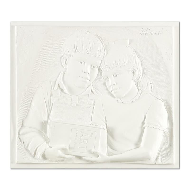 "Sharing" is a limited edition monotype relief sculpture from an AP edition, cast signed by Bill Mack. Includes Letter of Authenticity. Measures approx. 23.5" x 20.5" (sculpture).