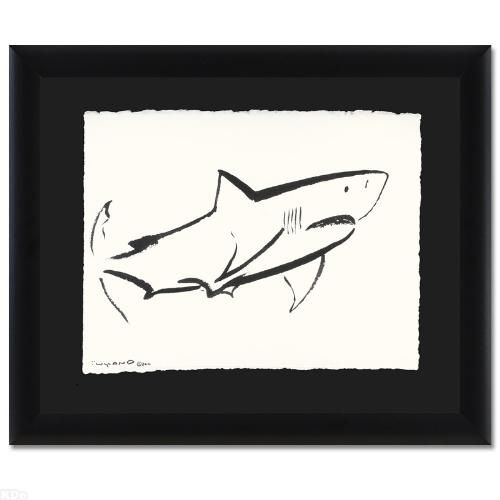 Wyland's simple but exquisite portraits of marine life are unmatched in skill and beauty. "Shark" is an original sumi brush art painting on deckle-edge paper, hand signed by Wyland. This piece comes in a brand new custom frame and is ready to hang! Includes Certificate of Authenticity! Measures approx. 22" x 18" (with frame), 15" x 11" (image).