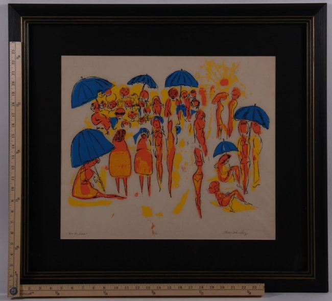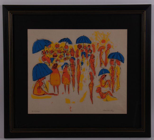 Sharon Bohm Levy, pencil signed serigraph. Award winning artist originally from Ohio and now living in Florida; work in permanent collections of Butler Institute of American Art, Ohio; Hoyt Institute of Fine Arts, PA; numerous galleries and hundreds of private collections. Exhibited in twelve one-woman shows in Ohio and PA and in more than 100 group shows; Work represented in galleries in several states. Bachelor of Fine Arts degree and many years of graduate work specializing in printmaking and painting. Recipient of over 50 awards. (Size: See second photo for measurement.) Photos are part of the description representing the condition report. Pangaea Auctions urges Bidder's to view all attached photos.