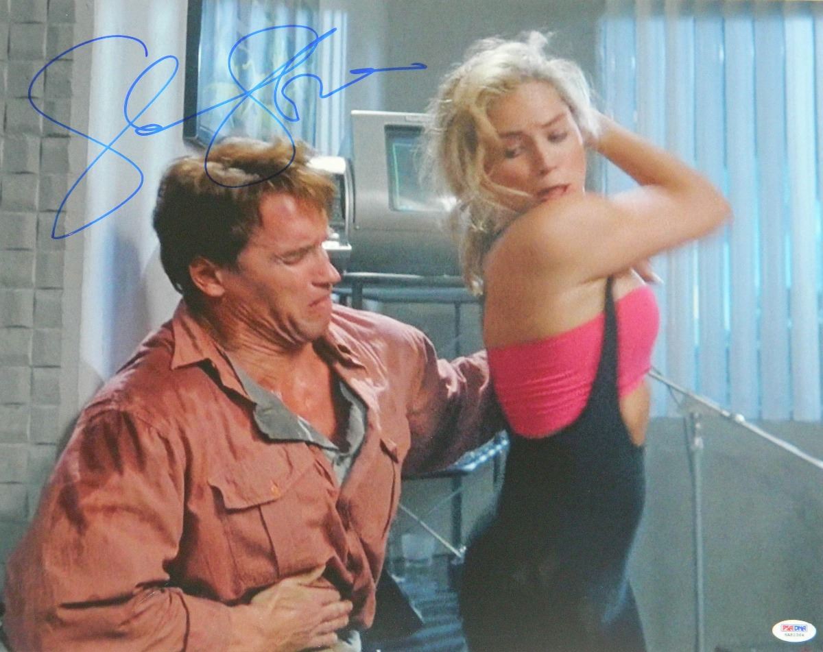 Sharon Stone signed Total Recall elbowing Arnold Schwarzenegger 16x20 photo. Item comes with a PSA/DNA tamper evident numbered sticker and matching Certificate of Authenticity which can be verified online.
