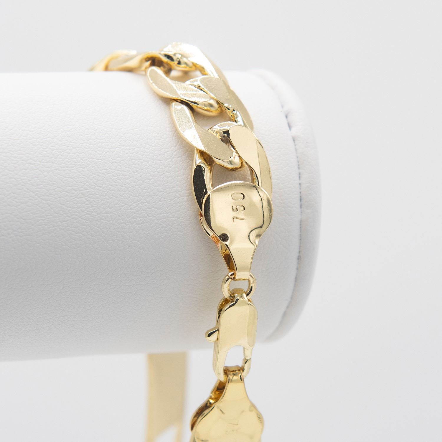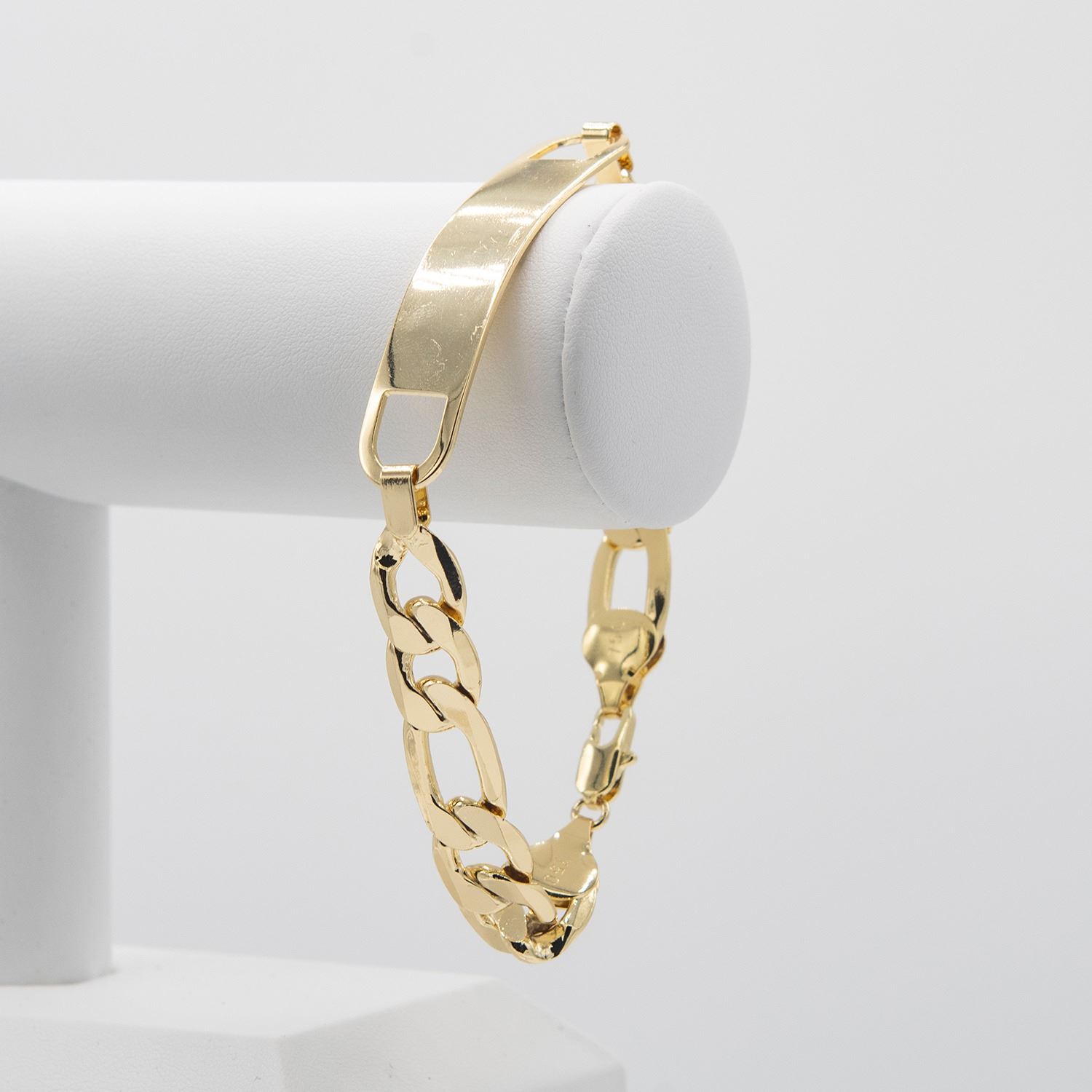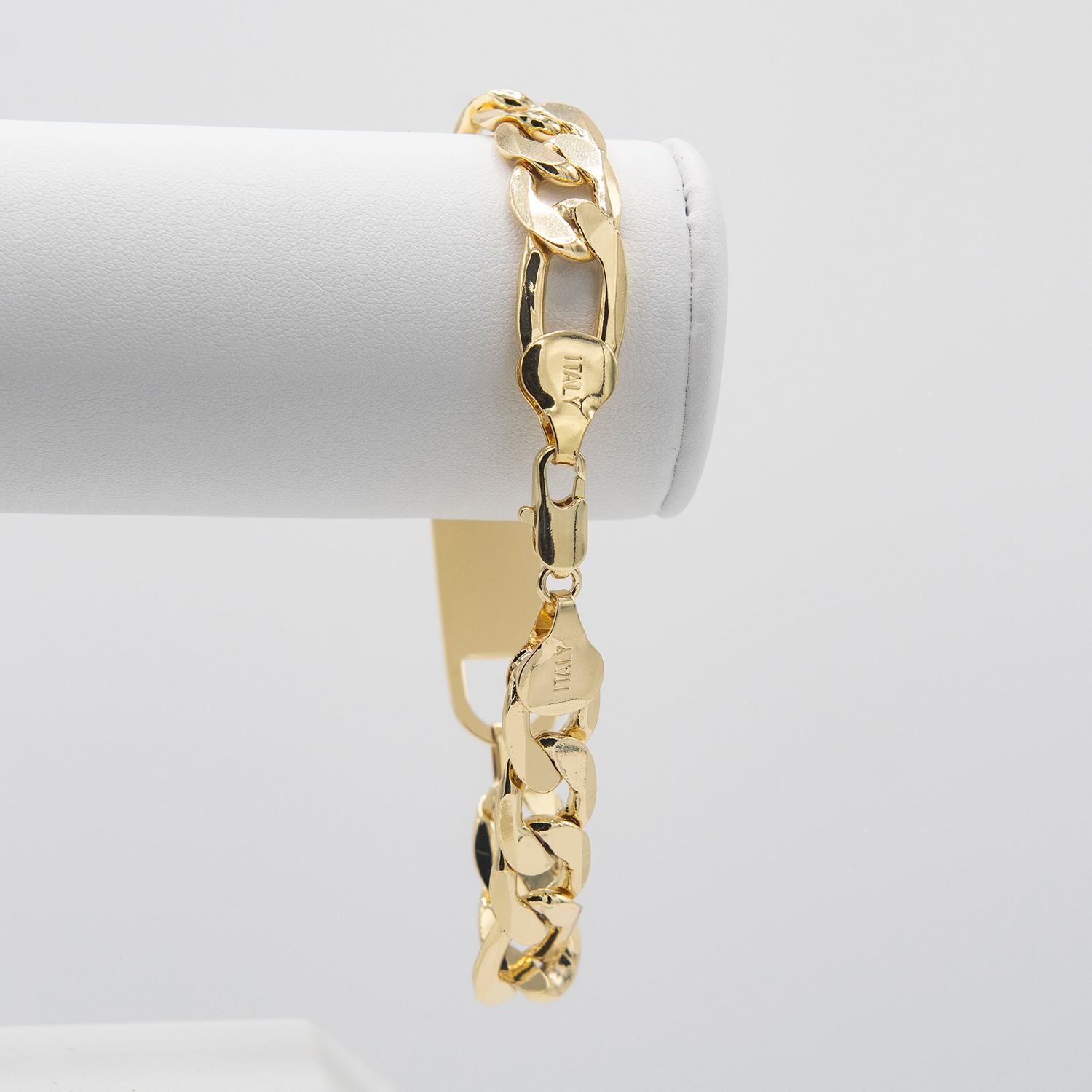 Sharp 26 Gram 14 Kt Gold Plated Figaro Bracelet. Italy stamp.9 " long and healthy 12 mm. width.