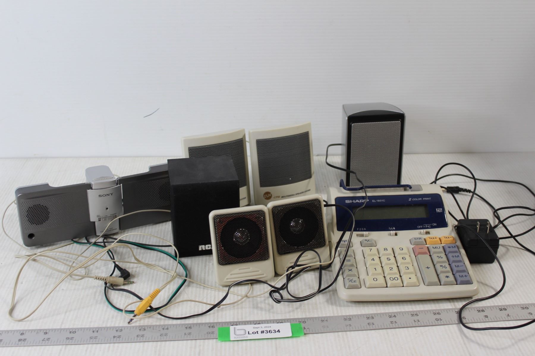 Sharp Printing Calculator Missing Paper - Tested Works, (7) Various Small Speakers - All Untested