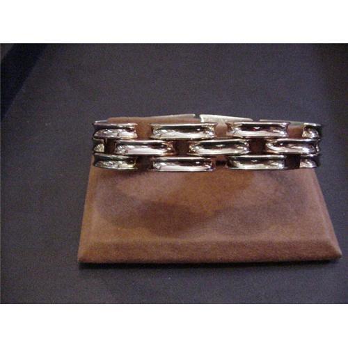 Sharp Tri-Color Gold - Pink, Green, Yellow Retro Circa 1940 Tank Track Flexible Bracelet 7 inch length 1/2 inch wide in wonderful condition. Great Design, Fabulous Shape. Hallmarked "14K" and with the Krementz Maker's Mark. Famous East Coast Jewelry Manufacturer. Fabulous piece - Great condition.