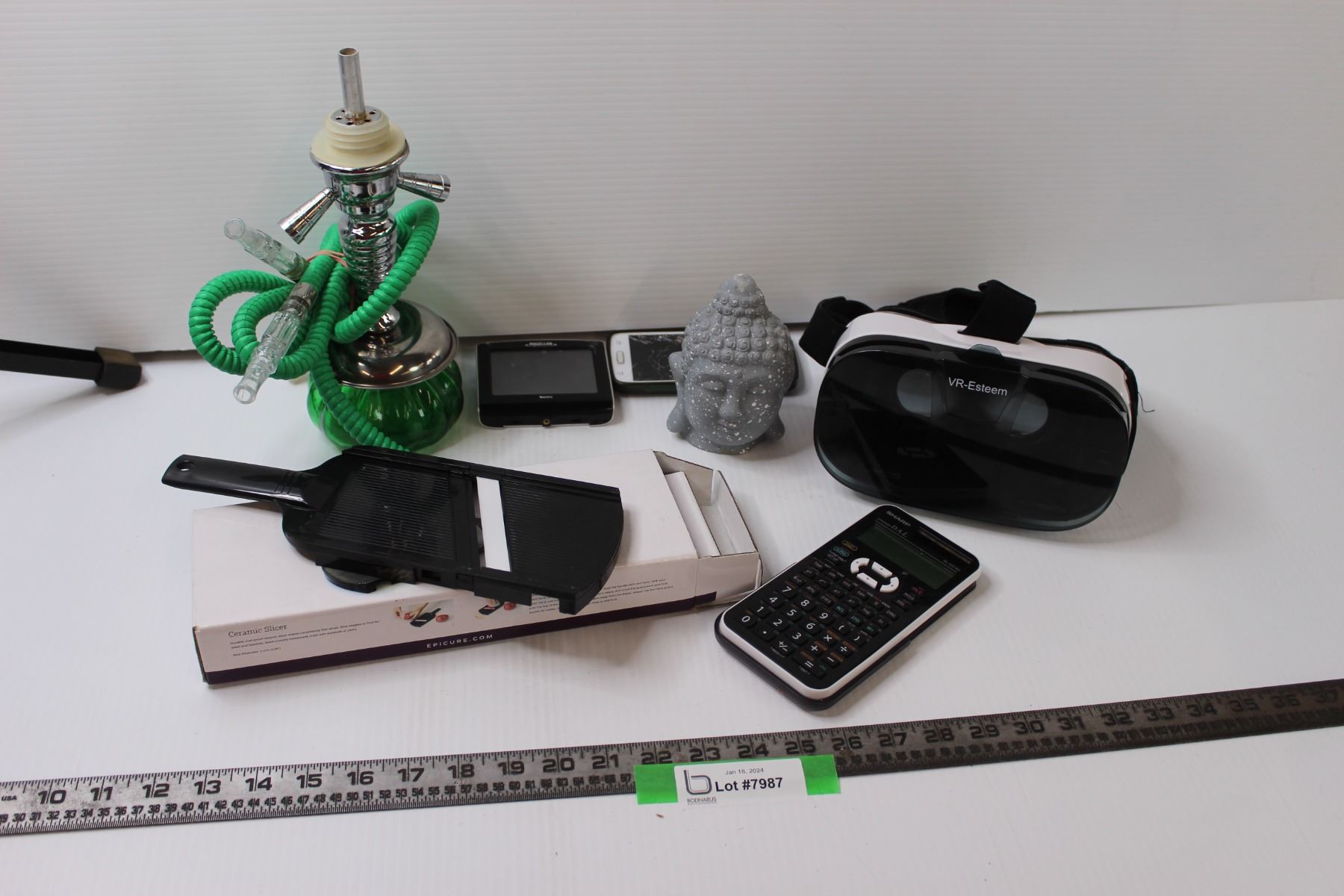 Sharp Scientific Calculator, Epicure Mandolin, Hookah, Hindu Head Statue, Misc.