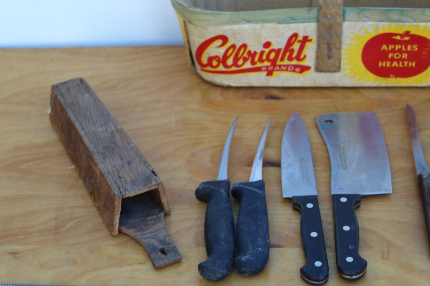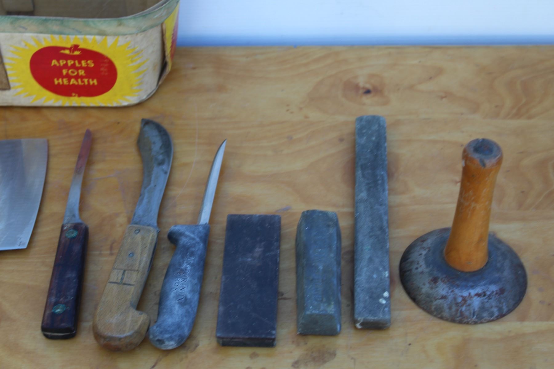 ** Sharpening Stones, Butcher Knives, Pig Scraper, Meat Cleaver
