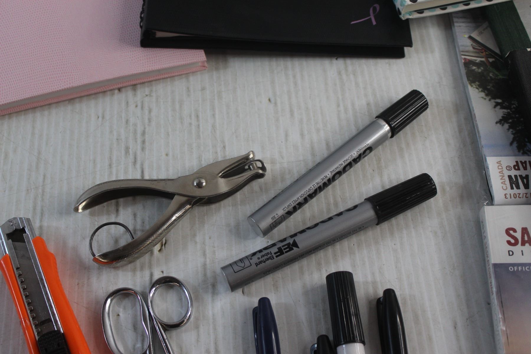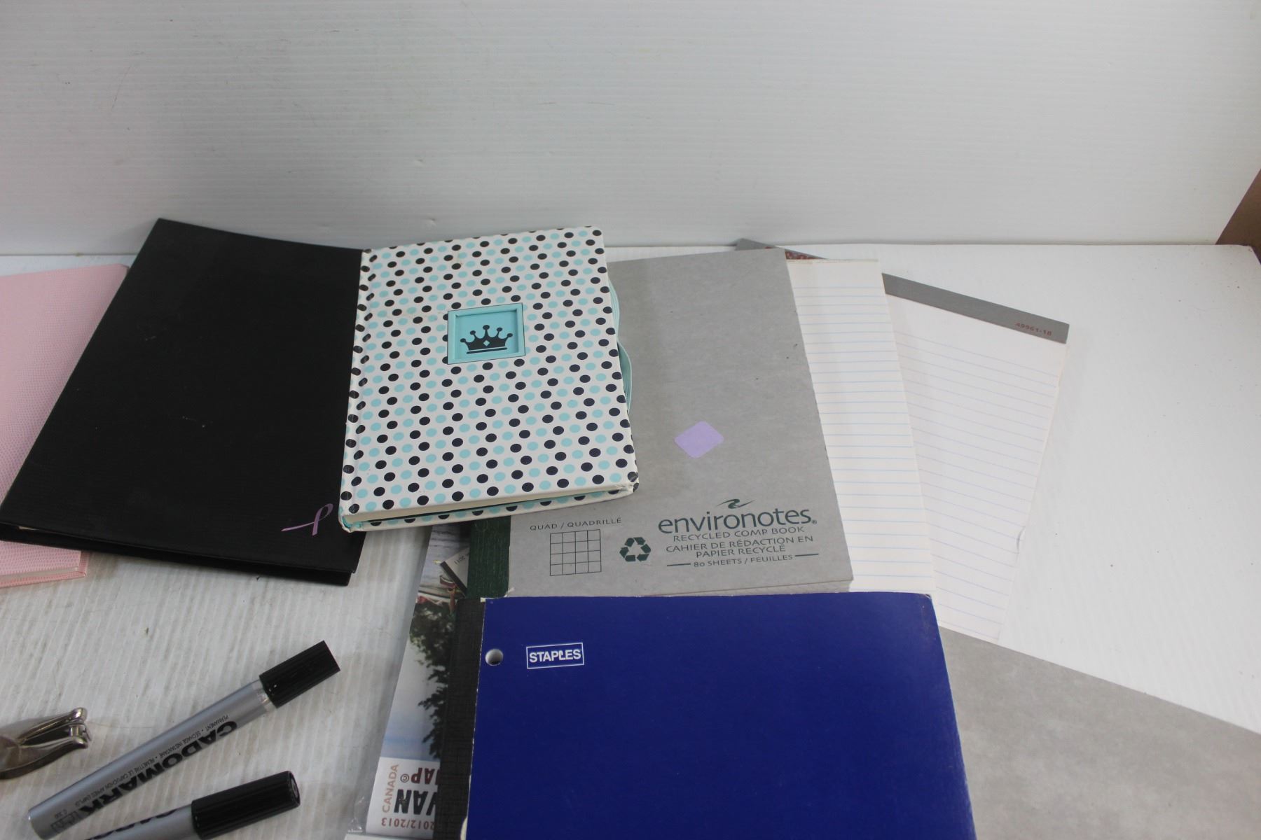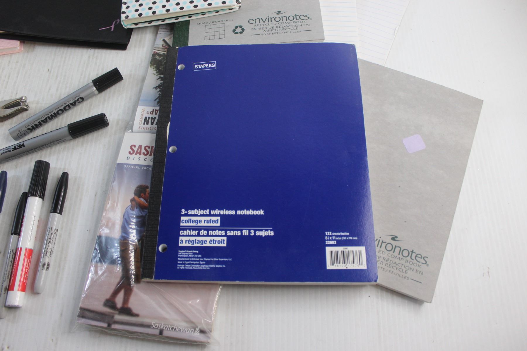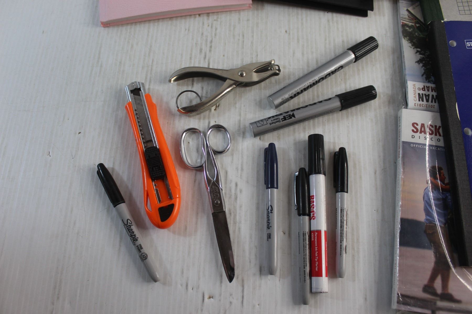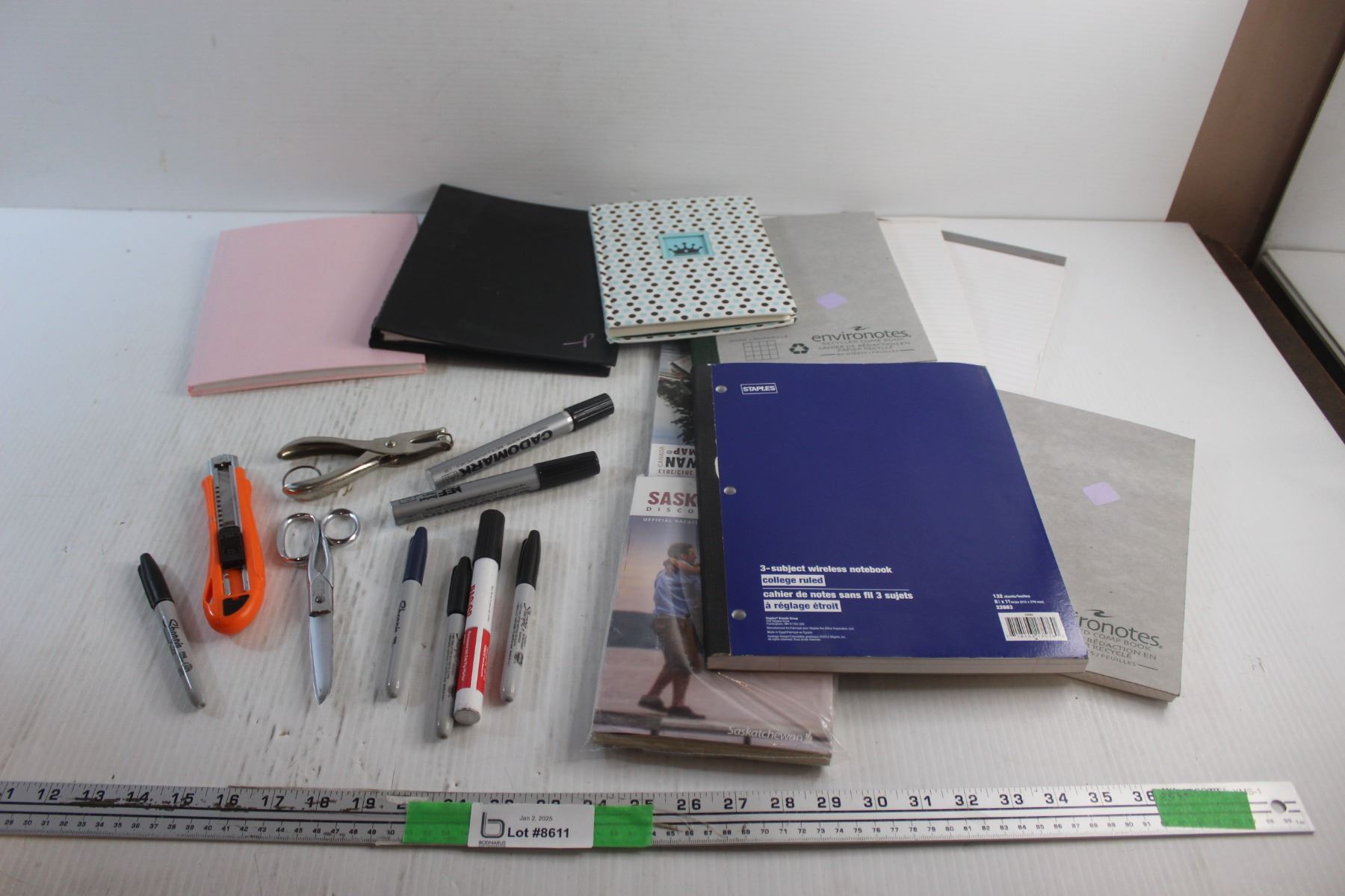 Sharpies, Box Cutter, Notebooks, Scissors, Paper Punch and Misc.