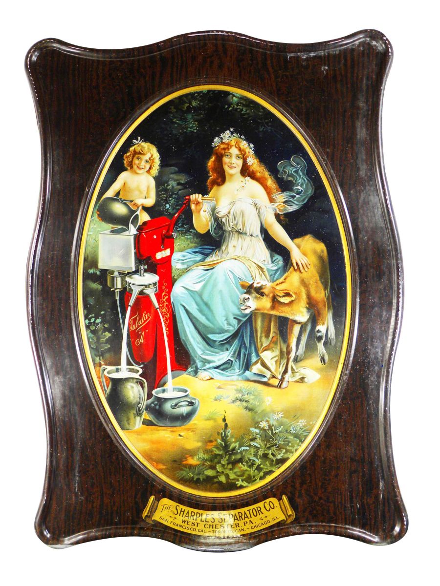 Sharples Separator Company Self Framed Tin Sign. Some scratches on the outside rim and some light staining on the frame itself especially at 6:00, otherwise good condition. 28 X 39 inches overall.