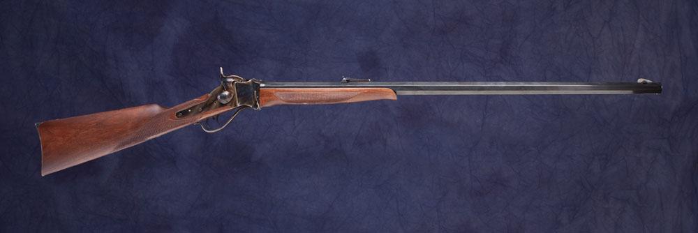 .45/70 caliber Sporting rifle with 32” blued octagon barrel with an adjustable rear sight. The remaining metal parts are case colored. This rifle has a double set trigger and the wood is American walnut which is hand checkered and oil finished. Condition is as new in box but forend has slight storage ding. Manufactured in Italy. * Refer to page 169 for FFA information.
