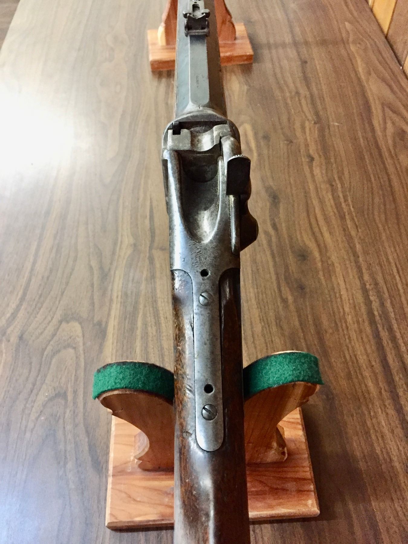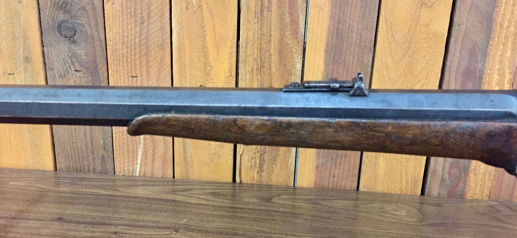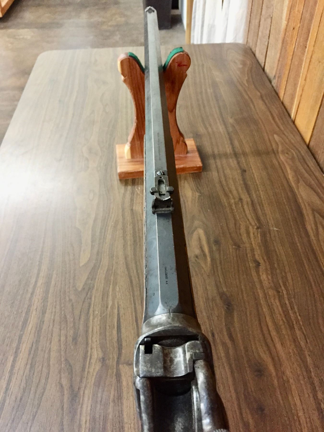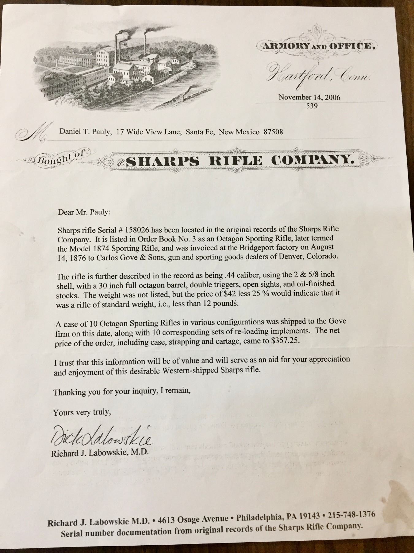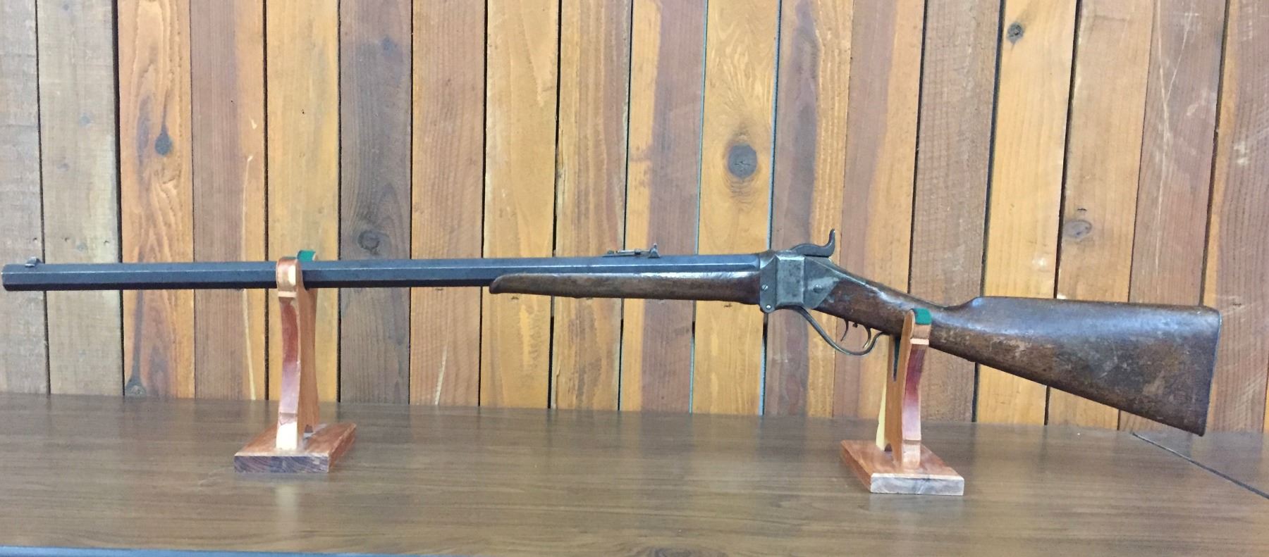 Description: Presented for your consideration is this Sharps Rifle in .44/90 caliber with a 30" octagon barrel, set trigger, rear elevator sight, (RS Lawrence Pat. 215, 1869 for the elevator sight). Comes with documentation. Maker: Sharps Rifle Co., Bridegeport, Conn. Approx. Age: 1876. Serial# 158026.