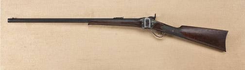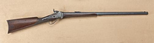 Sharps Meacham conversion of Civil War carbine action to sporting rifle, .45-90 caliber, 28” medium weight octagon barrel, blue and case hardened finish, checkered buttplate with serial #C40851 on tang, original barrel serial #156543 marked out and #45285 added when converted. Note: These numbers can sometimes be researched through Sharps records and find interesting results. The barrel shows “Old Reliable” and Sharps address, .45 caliber marking with 2.3” length, approx. 60-80% toning blue, original sharps rear sight and front sight with globe removed. The action shows traces of case hardening drifting to silvery grayish brown, the stocks are good to very good with some minor dings, mars, normal use. The action is good, the bore shows some erosion at the breech but bright at the end, but at least good and may clean. These Meacham conversions wear also sold on the frontier, just not a top-line Sharps product. Est: $4,500 - $6,500
