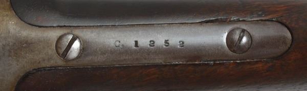 Serial no. C, 1252 .50-70 cartridge conversion. grey brown patina with 4 nothches cut into the stock
