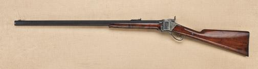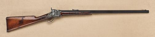 Sharps model 1874 sporting rifle, 42-1/4” straight case, 30” medium to heavy weight octagon barrel, standard stock with steel milled buttplate, sharps type rear sight with folding beach front sight. Sharps letter states invoice march 1877 to E.S. Harris, weight 11lbs, 7 oz. Price $42. Confirms barrel and caliber. The barrel shows 75-85% original thinning and toning blue finish, the frame shows 30-50% case hardening drifting to silver and brown with some erosion, pinprick pitting, and normal age. The stocks are good with nice grain to the forend, considerable original varnish. Some darkening, scratches, normal use, but at least good to very good overall. The action good, the bore near excellent. Serial #160257. Est: $14,000 - $18,000