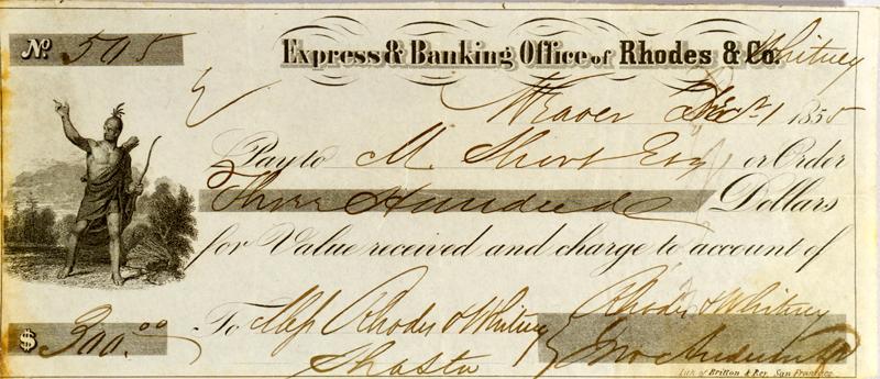 Shasta,CA - Dec. 1, 1855 - Rhodes and Whitney Co. Documents :
