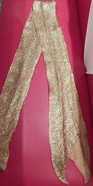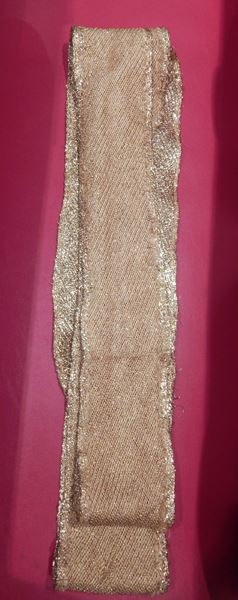 One Command tunic sash made of metallic gold material worn on screen during the 1960s episodes of the original "Star Trek" series by Shatner, Nimoy, and Doohan. This item comes with a certificate of authenticity guaranteed for the life of the piece.