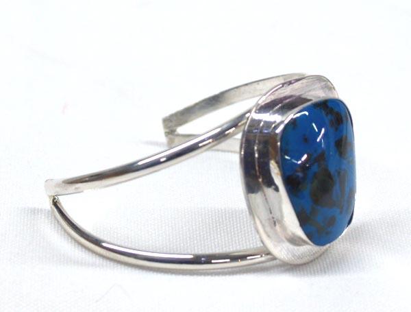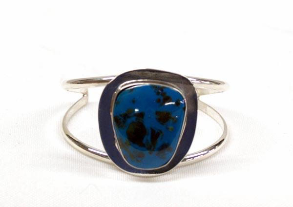 Stunning, One of Kind Shattukite (from Morenci, AZ) & Sterling Bracelet by Sally Hansen, local Silver City, NM artist, she hand cuts and polishes her own stones and does all of her own silverwork, inside measurement of 5.75'', 1.25'' x 1 1/8'', stone measures approx. 1'' x .75''. Buyers Pay Actual Shipping and Handling Charges(see terms and conditions for more information)