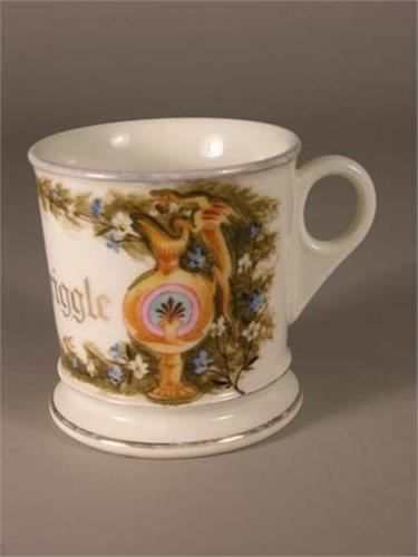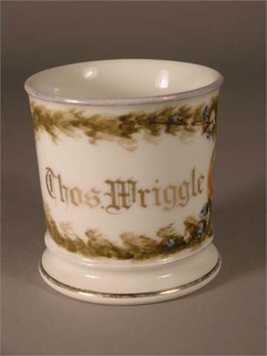 Shaving mug for Thos. Wriggle - ewer with dragon handle design. No chips or cracks.