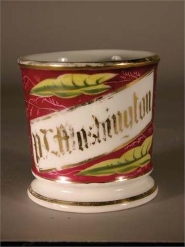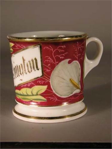 Shaving mug for N.L. Washington, Lilly design, marked K.P.M. Germany. No chips or cracks.