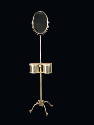 Shaving Stand, nickel plated and cast iron. Excellent original condition. 67 inches tall.