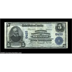 Shawano, WI - $5 1902 Plain Back Fr. 606 The Wisconsin NB Ch. # 6403The second title used by this ba