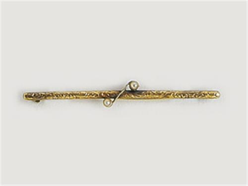 8 K gold, engraved decoration on straight baton, 2 half pearls, weight: 4.7 g, restored.