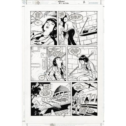 <B>Shawn McManus - Deadman #9 Complete 22-page Story Original Art (DC, 2002).</B></I> This complete story from the last issue of Deadman's third series was pencilled and inked by the very talented Shawn McManus. Starring Deadman and Max Loomis, plus the villains Onyx, Zi, Sensei, the League of Assassins, and Jonah. This issue also features the first appearance of Mr. Po. All pages measure 11" x 17" overall, and are in excellent condition.