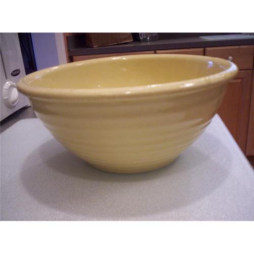 </font></strong>This is a ribbed bowl made by the Shawnee Pottery Co. in Zanesville, Ohio. the diameter is 8" and it is part of a five bowl set. I believe this was the second largest bowl. It has the usual skips and bumps you would expect in old pottery. I don't see anything I would call a chip or crack. This bowl is in very good condition. Shawnee bowls are not easy to find so if you've been looking, here's your chance to own one.