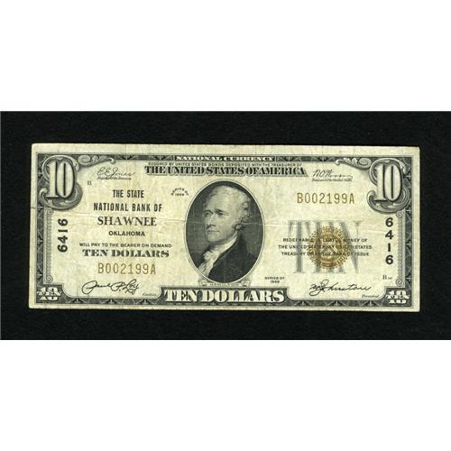 Shawnee, OK - $10 1929 Ty. 1 The State NB Ch. #