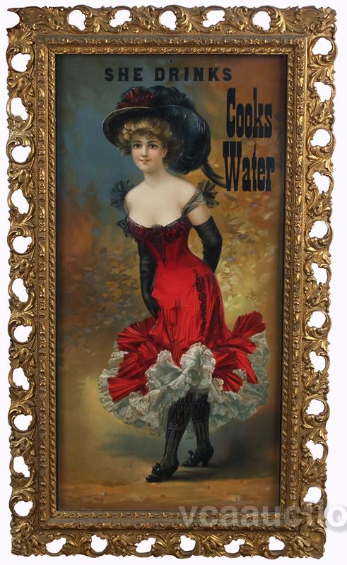 "She Drinks Cooks Water" Embossed Cardboard Sign In Frame, All Original - 16" x 28"