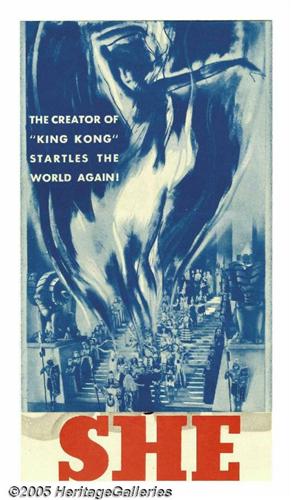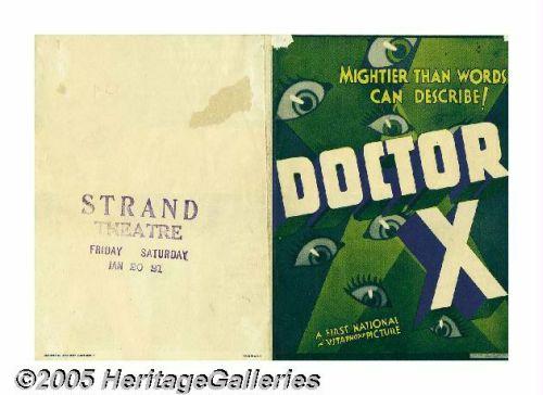 <B>She (RKO, 1935) and Doctor X (First National, 1932).</B></I> Heralds (2). Broadway star and later two-term congresswoman from California, Helen Galagan, stars in her only major screen appearance "She." This horror film is one of the best of the early pieces. Both Heralds are in terrific condition. There is some very minor excess paper from previous mounting, but overall they are in excellent shape. Very Fine.