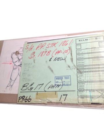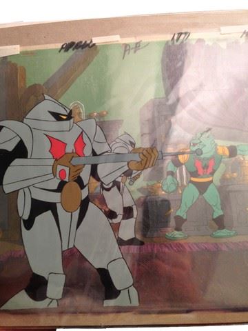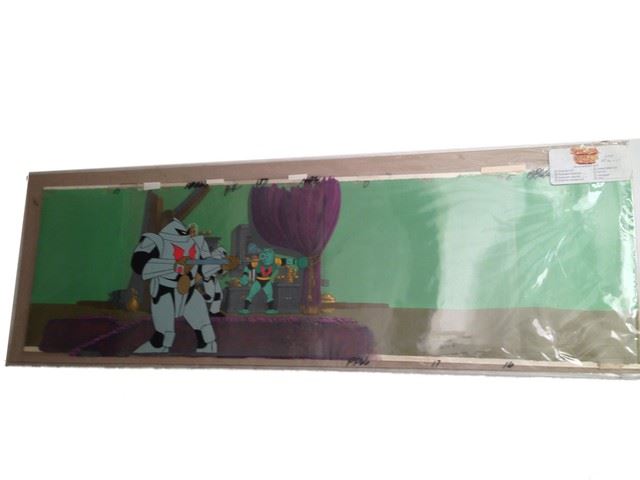 "She-Ra" Animation Pan (featuring "Horde Troopers" / includes original hand drawn character sketch / also includes original hand painted background / 1985 / Filmation Studios / 35" x 10.5")