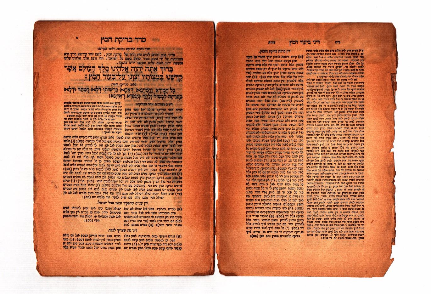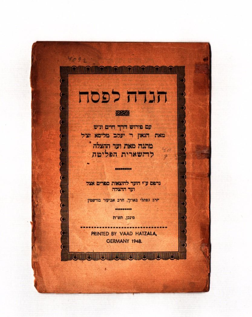 Passover Haggadah with Derech Chaim [Venehora Shalem] commentary by… Rabbi Yaacov [Larberboim] from Leszno. Presented by the She'erit Haplita Rescue Committee. Printed by the Book Publishing Committee of the Rescue Committee, Rabbi Naftali Baruch, Rabbi Aviezer Burstein. Munich, 1948. Yeari 2361, Haggadah Thesaurus 4092. Good condition: wihout binding, yellowing, slightly torn margins.