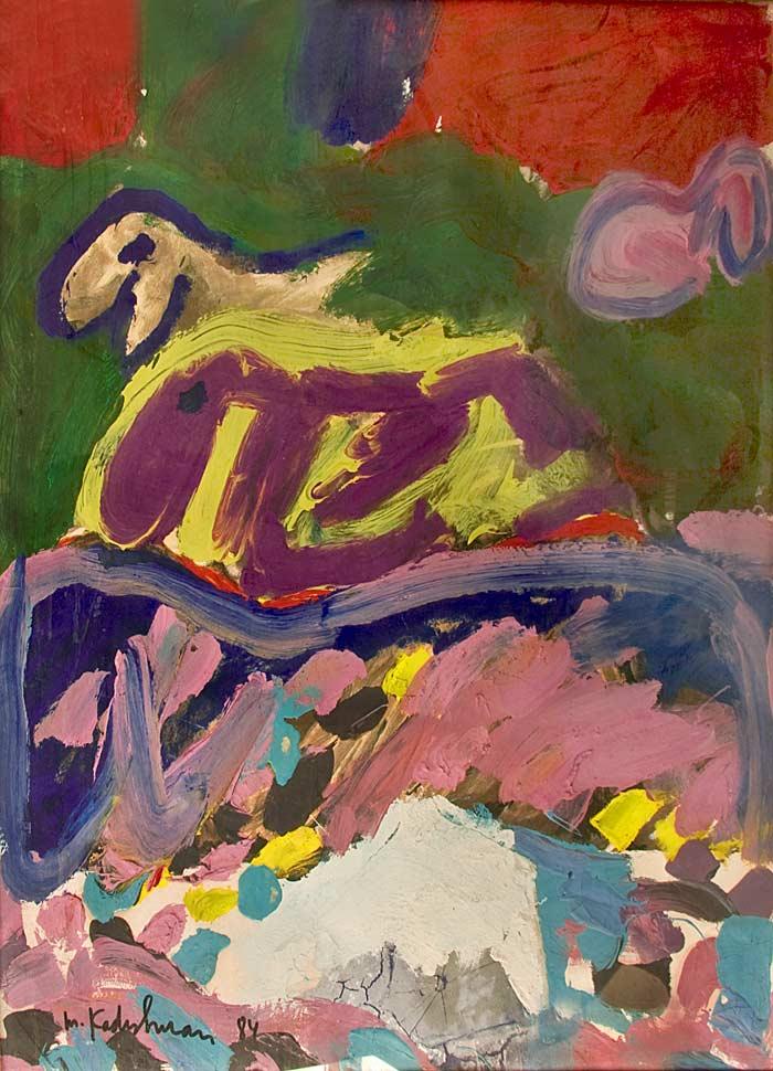 Menashe Kadishman, Sculptor and Painter. Born in 1932 in Tel Aviv. Studies: 1947-50 Sculpture with Moshe Sternschuss; 1954 with Rudi Lehman; 1959-60 St. Martin's School of Art, London and Slade School, London. Prizes: 1960 America-Israel Cultural Foundation; 1961 grant from Sainsbury Fund, London; 1967 First Prize for Sculpture, Paris Biennale; 1978 Sandberg Prize for Israeli Artist, Israel Museum, Jerusalem; 1981 Eugene Kolb Prize for Israeli Graphic Arts, Tel Aviv Museum; Jury Prize, Norwegian Print Biennale, Fredrikstad; 1984 Mendel Pundik Prize for Israeli Art, Tel Aviv Museum; 1990 Dizengoff Prize for Sculpture; 1995 Israel Prize. Environmental sculptures in Israel, Germany, Japan, U.S.A. Exhibited 1967 at 5th Paris Biennale; 1972 and 1978 Venice Biennale; 1979 Print Biennale, Tokyo, Japan; 1985 18th Sao Paulo Biennale; December 2005 - February 2006, Retrospective, Tel Aviv Museum of Art.
