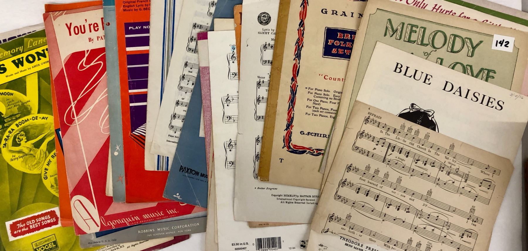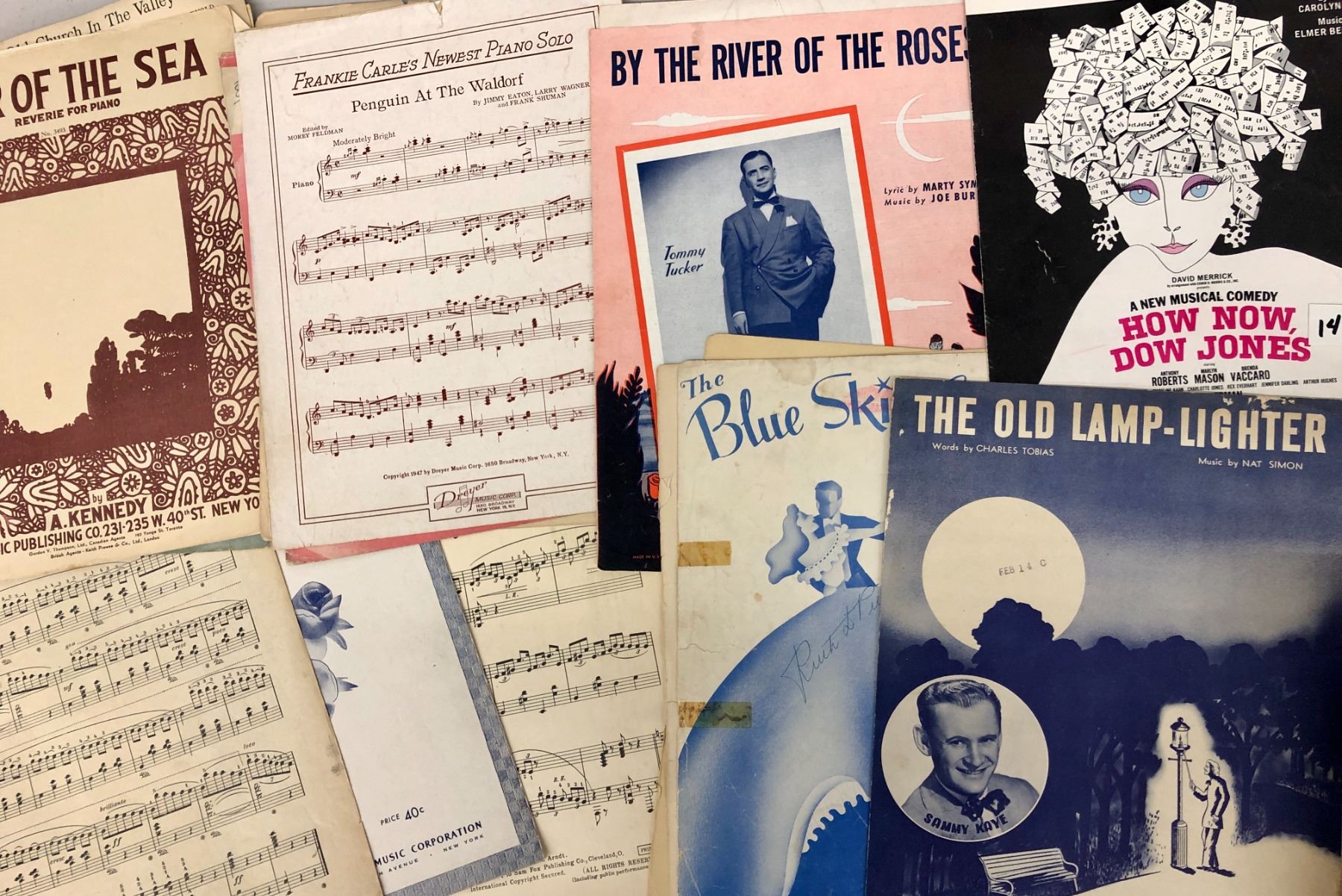 Over 110 pieces of sheet music. Vintage. Some with wear.