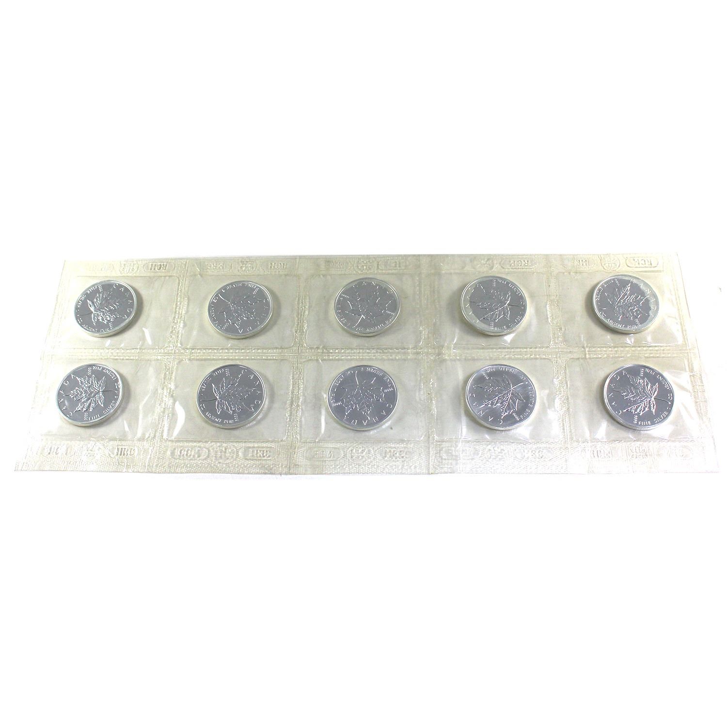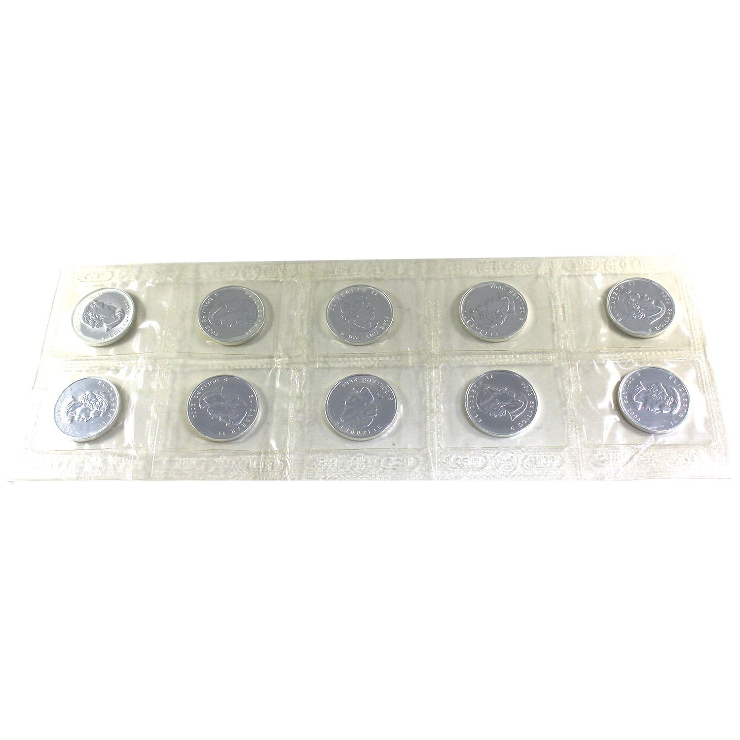 Sheet of 10x 1oz 2004 Canada $5 SML .9999 Silver Coins in Mint Plastic. Light frosted tones at edges. 10pcs. (Tax Exempt)