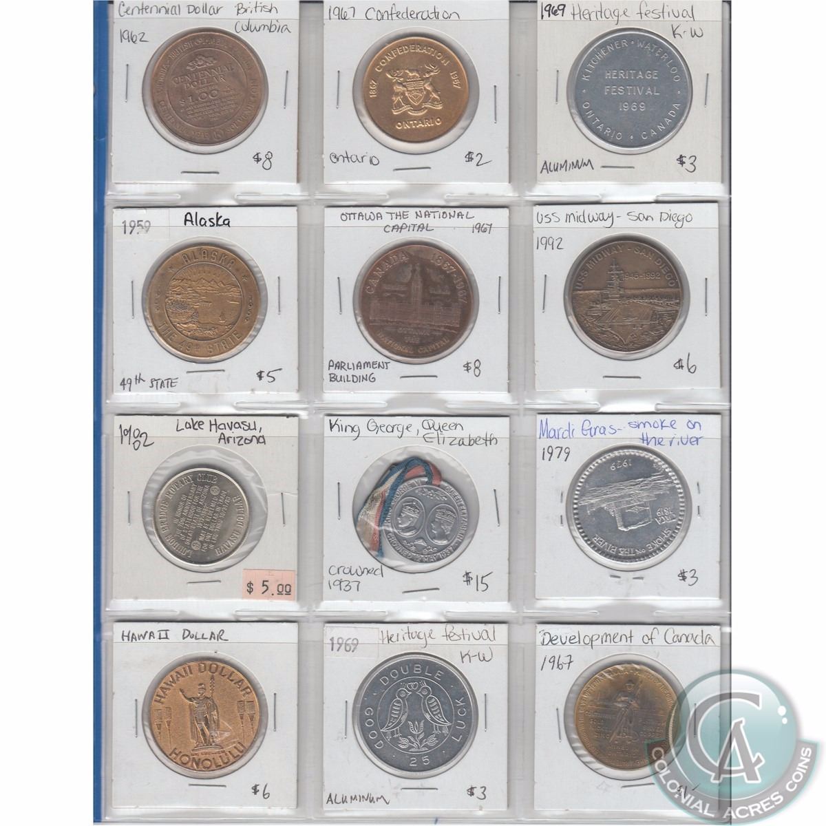 Sheet of 12x Miscellaneous Medallion, Tokens and Trade Dollars. You will receive 12 different coins. 12pcs.
