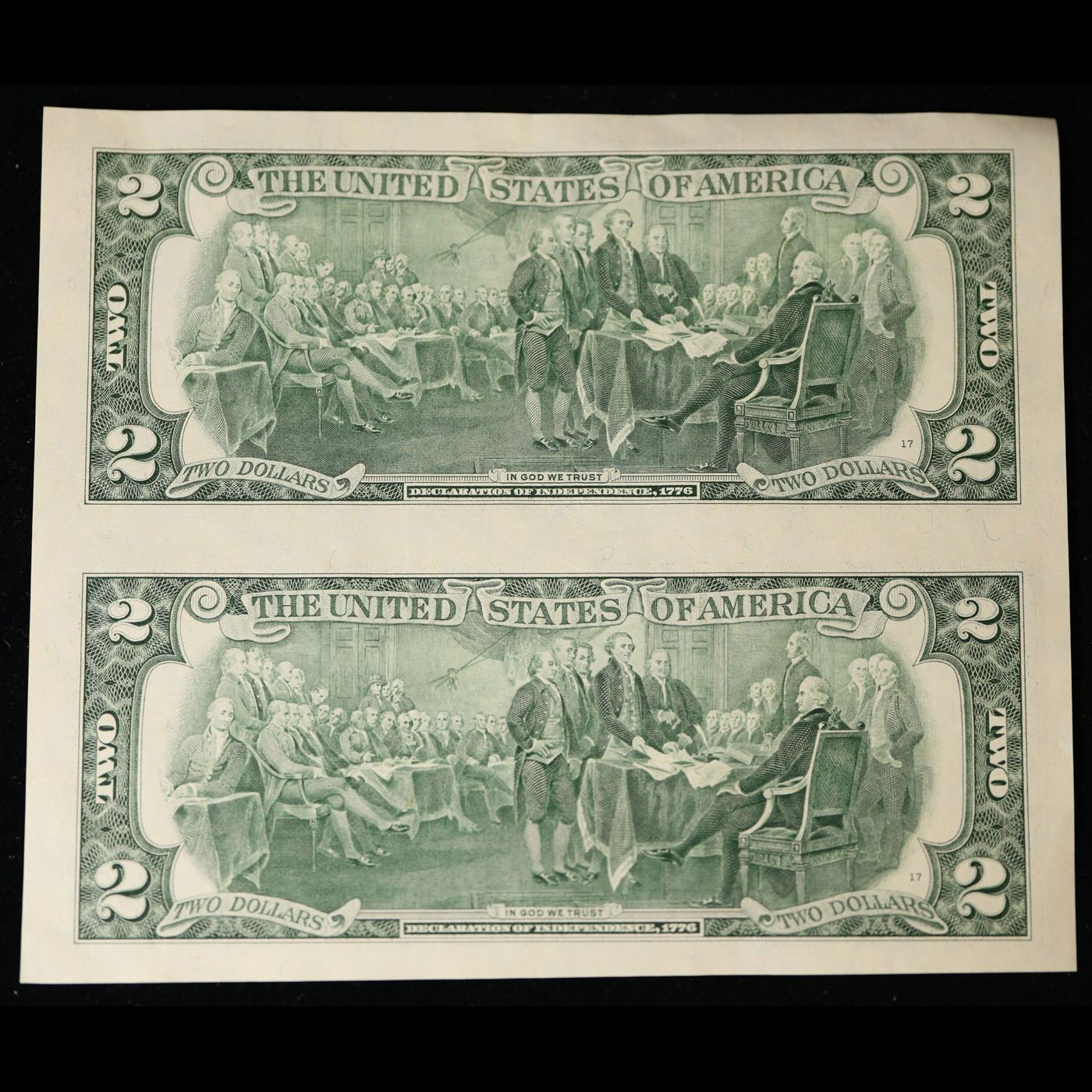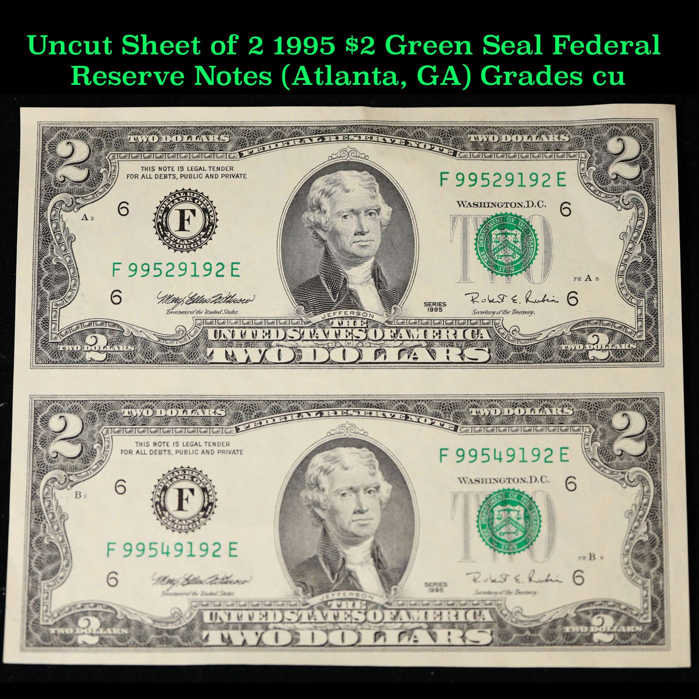 Sheet of 2 1995 $2 Green Seal Federal Reserve Notes (Atlanta, GA) Grades cu
