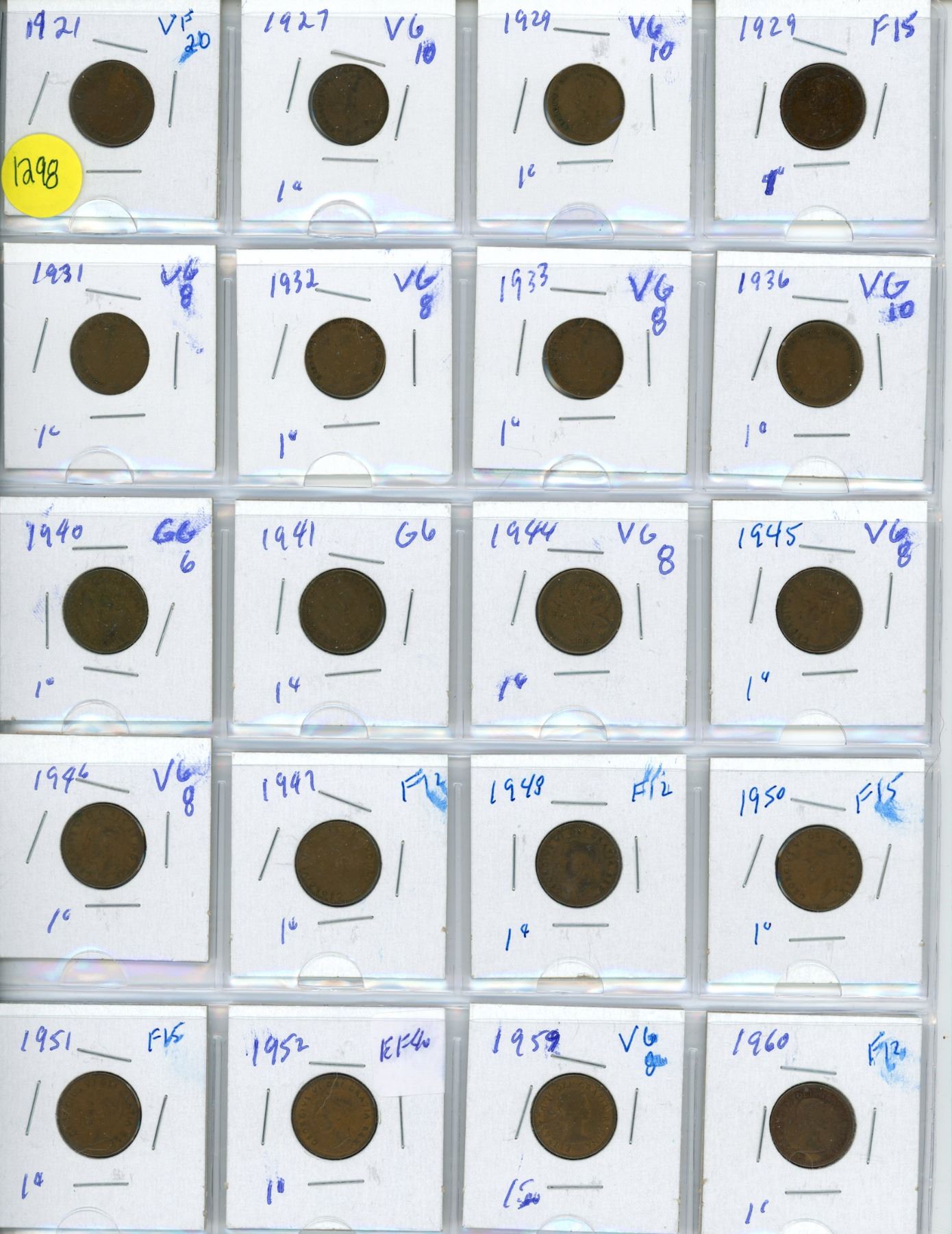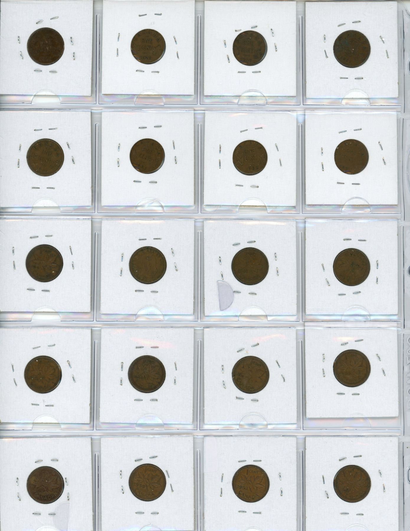 Sheet of 20 Canadian 1¢ one cent, see year in description and grades in 3rd photo