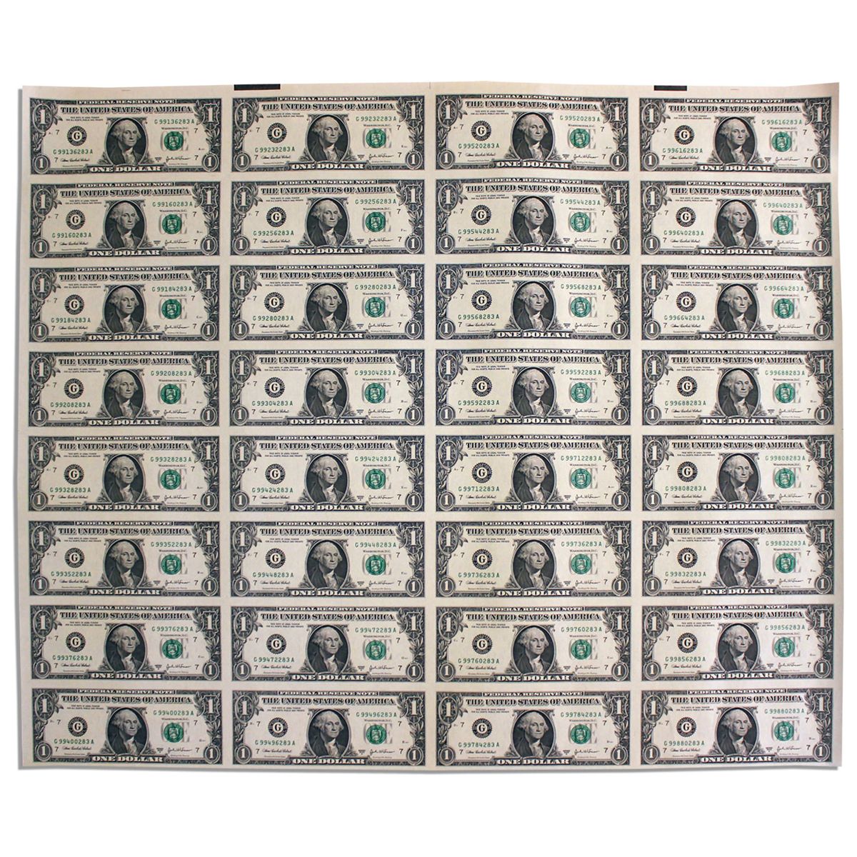 Sheet of 32 Uncut $1 Federal Reserve Notes -- Series 2003-A, Chicago -- Near Fine