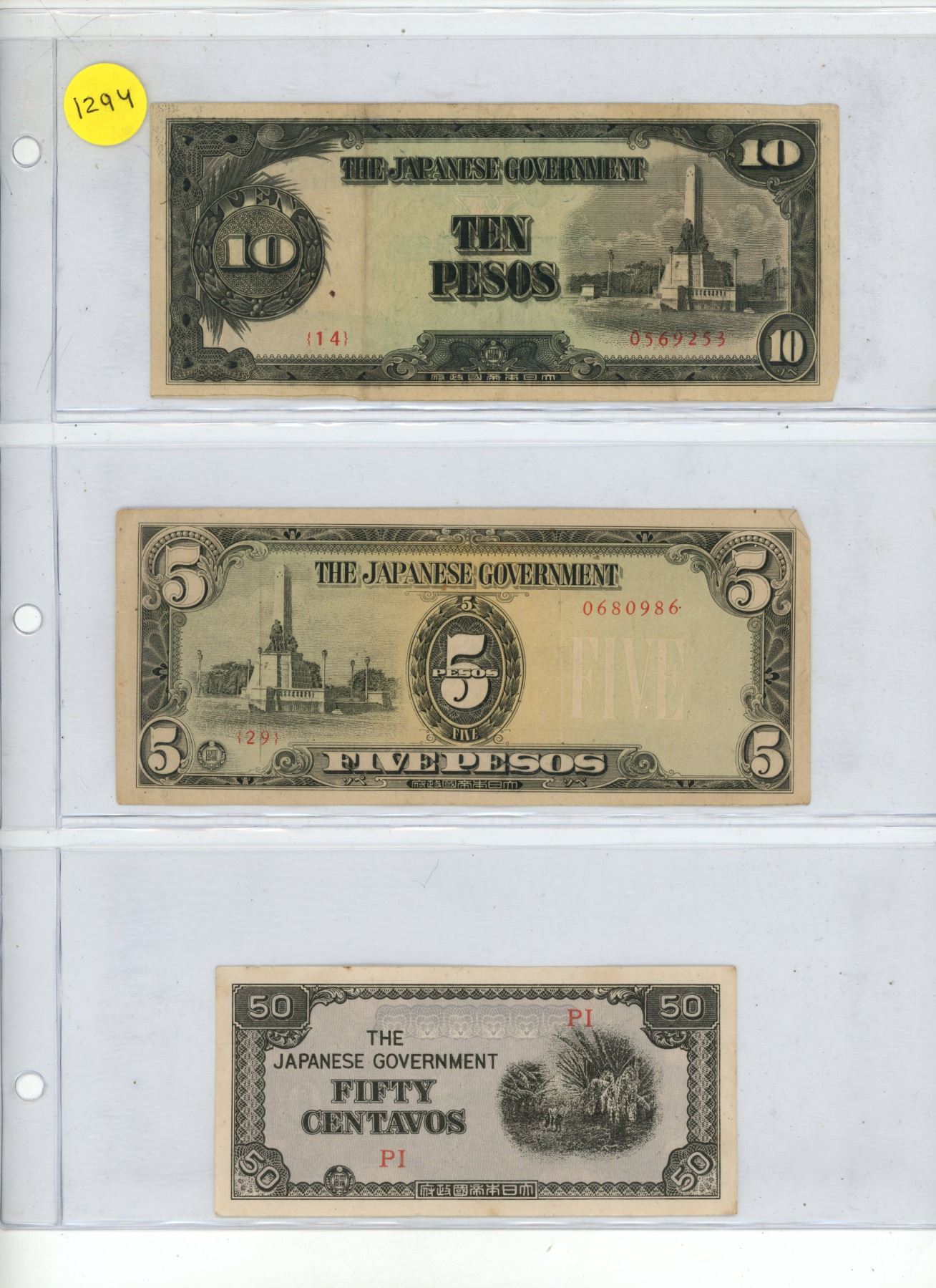 Sheet of Japanese WWII Occupation Currency.