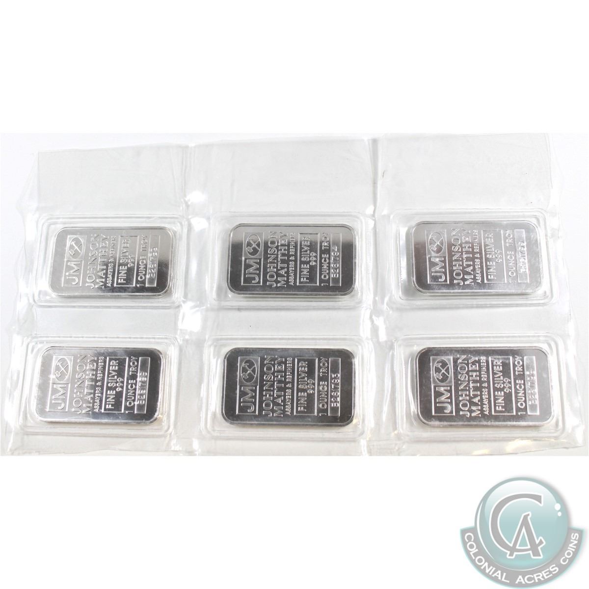 Sheet of Johnson Matthey 1oz Fine Silver Bars 'B Series' (Tax Exempt). Bars come sealed in the Original plastic sheet. 6pcs.