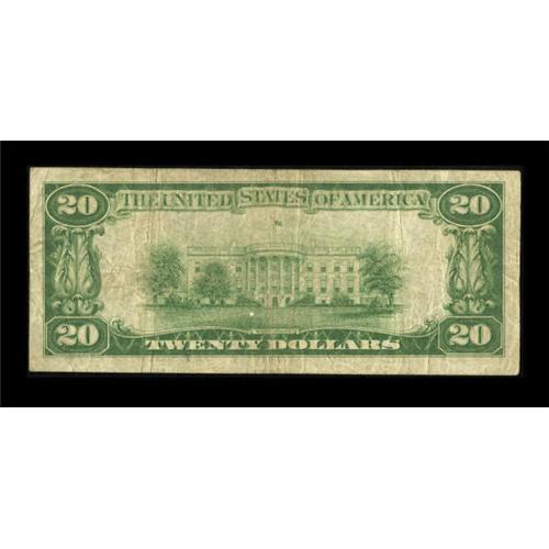 <B>Sheffield, AL</B></I> - $20 1929 Ty. 1 <B>The Sheffield NB</B></I> Ch. # 6759<BR> A small skin is noticed on the back of this example which has firm paper. With the addition of this note to the census, small notes now outnumber large by one. <B>Fine</B></I>.<BR><I>From The Kansas City Collection.</B></I><BR><BR><b>Shipping:</b> Coins & Currency (<a target="_blank" href="http://www.heritageauctions.com/common/shipping.php">view shipping information</a>)