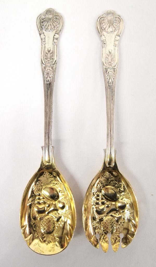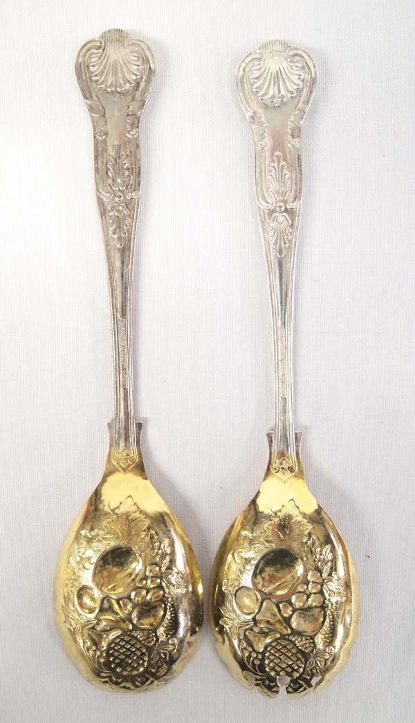 Sheffield Electroplate Silver & Gold Wash Serving Fork and Spoon, hallmarked, 8 7/8''L, hallmarked E.P.S.AI.Sheffield.England