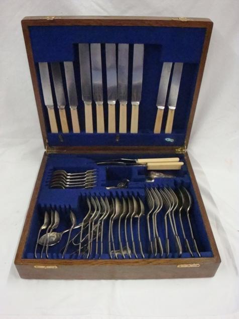 (40)pcs. of Sheffield Enterprise silver flatware along with about 10 other misc. pieces. The back of the flatware reads CS in a small diamond with hallmarked initials of JGGS.