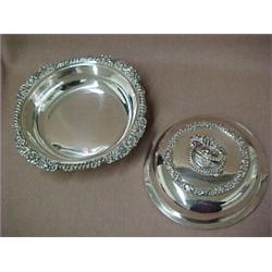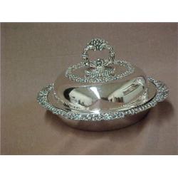 Sheffield round covered entree dish with lid, floral and gadroon border decoration, C. 1820 Es...