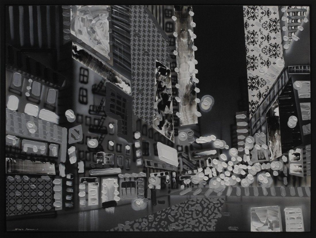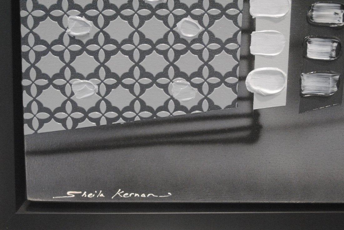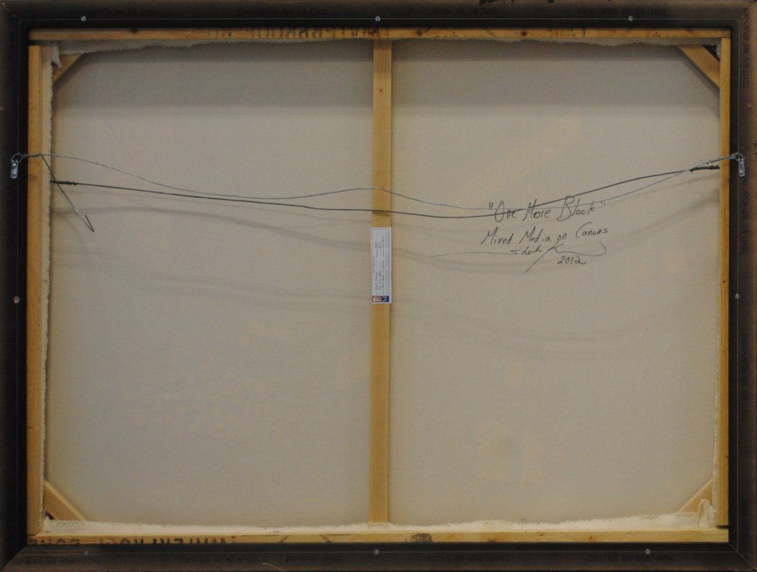 Sheila Kerman's 'One More Block' original mixed media on canvas painting. Image- 36" x 48". Frame- 38" x 50".