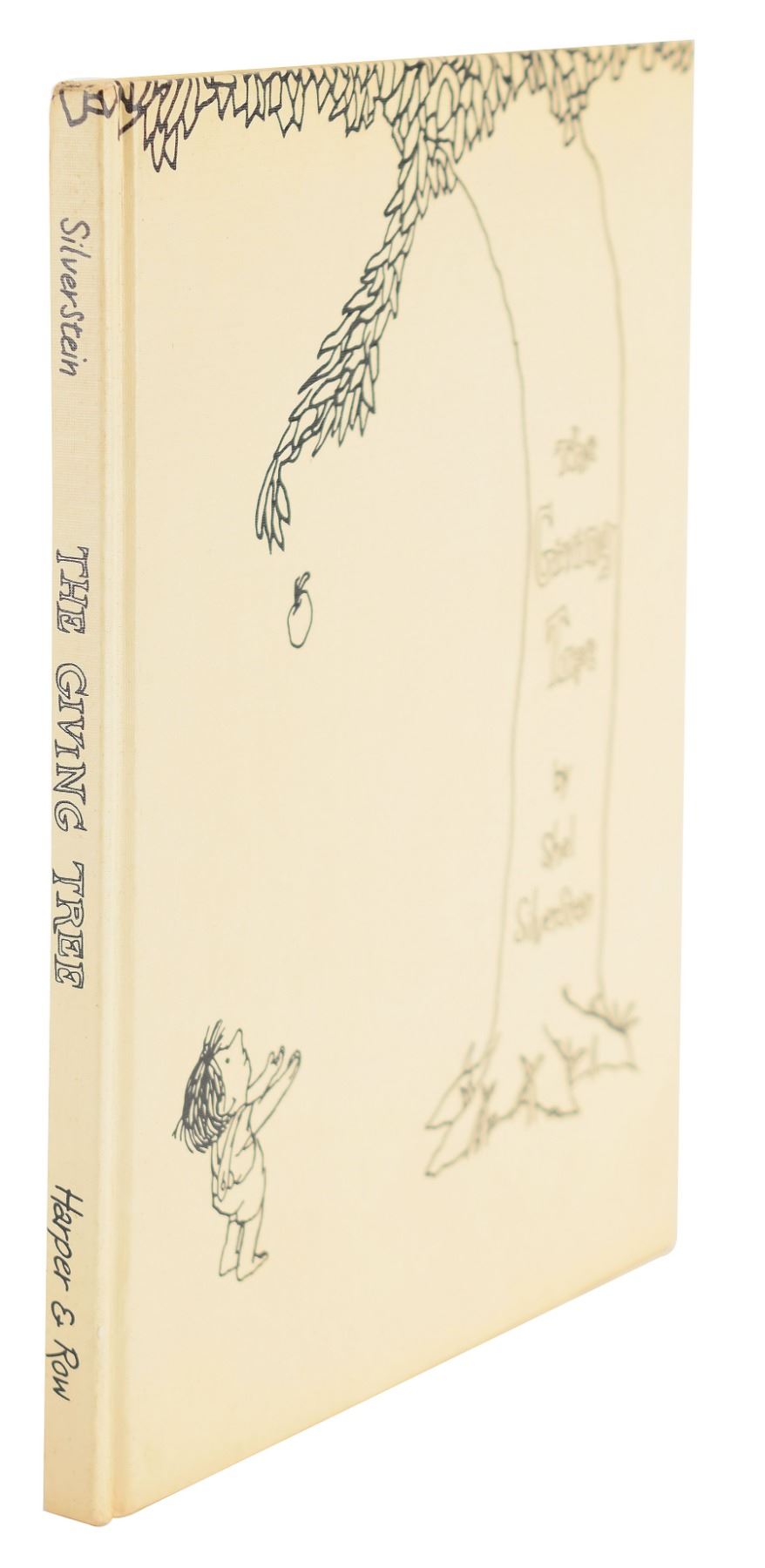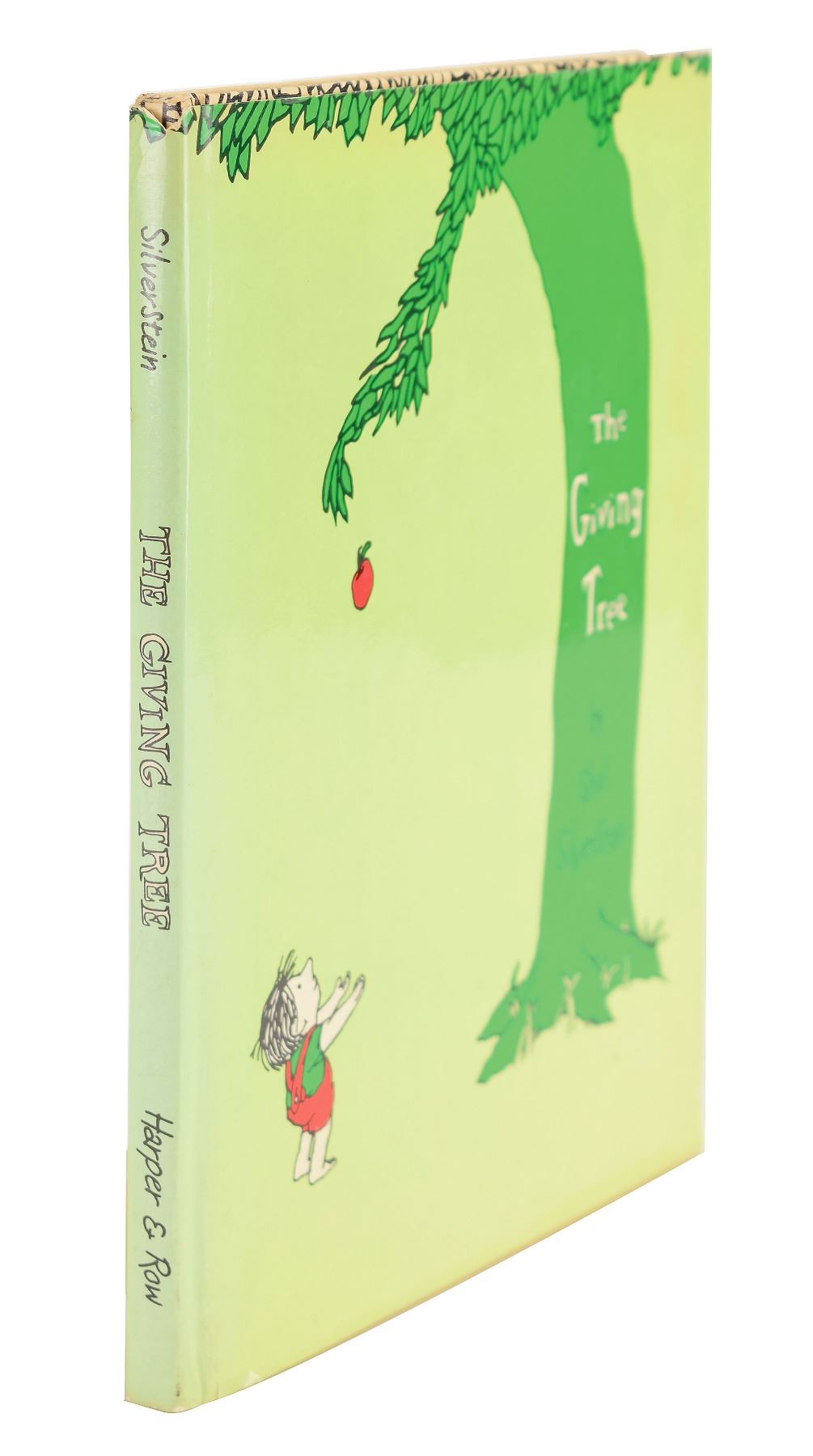 Unsigned first edition book: The Giving Tree by Shel Silverstein. First edition, first printing. NY: Harper & Row, 1964. Hardcover with dust jacket, 7.25 x 9. This is the true first edition with no ISBN number on the copyright page and with four lines of copyright information. An attractive dust jacket with a few tears to back panel which can be easily restored if desired. This first issue dust jacket has the publisher's $2.50 printed price present on the front flap of the dust jacket of which only 5,000 were ever printed. This particular copy is in excellent condition and is bound in the very rare white library binding which is far rarer than the green publishers boards. The binding is tight with no cocking or leaning and the boards are crisp. There is no writing, marks or bookplates in the book. A lovely copy with the original, first Issue $2.50 priced dust jacket with Shel Silverstein having hair in the picture. Book condition: fine. Dust jacket condition: very good.