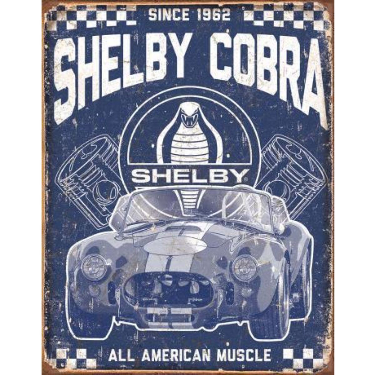 Shelby Cobra American Muscle vintage-style garage, pub bar metal sign. 12 1/2" X 16" with pre-drilled holes for mounting.