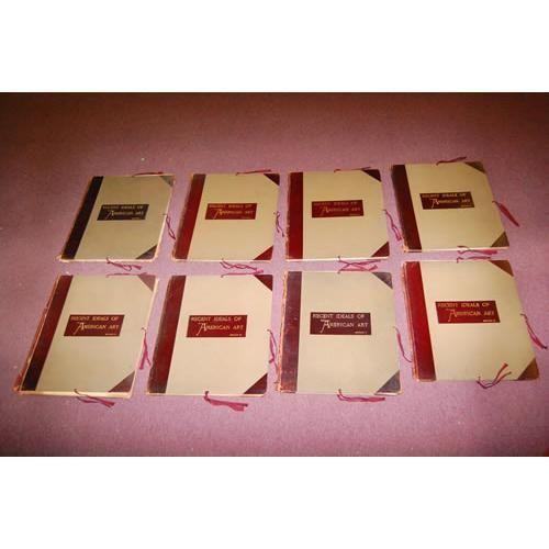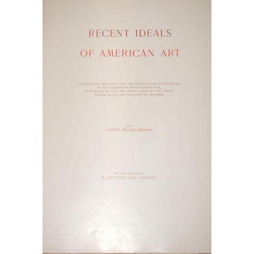 Sheldon, George William. Recent Ideals of American Art - Complete in 8 Portfolios. New York: D. Appleton and Co., 1888. Elephant Folio - over 15" - 23" tall. Ex-Library. Good Condition. AQUARELLE EDITION, LIMITED, #14 of 75 COPIES. 184 oil paintings and water colors in the galleries of private collectors, reproduced in Paris on copper plates by the Goupil photogravure and typogravure processes, COMPLETE WITH 80 PHOTOGRAVURES, on hard stock. iv, 158pp on glossy paper, all unbound as issued, in 8 original folding 3/4 leather & cloth portfolios with leather cover labels, lined in silk, with ties. Backstrips show wear & tear, corner/edge wear. Light library ink stamp on back of plates, lacks tissue guards.