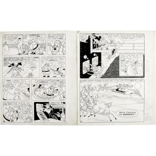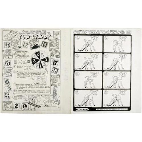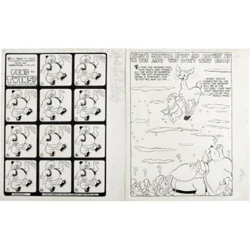 <B>Sheldon Mayer - Rudolph, the Red Nosed Reindeer Page Original Art, Group of 6 (DC, 1980-81).</B></I> Four puzzle pages and two story pages of festive Rudolph art by DC legend, Sheldon Mayer, are the focus of this fun-filled lot. Each page has an image area of 10" x 15", and the art averages Very Good condition.<BR><BR><b>Shipping:</b> Flat Material, Small (<a target="_blank" href="http://www.heritageauctions.com/common/shipping.php">view shipping information</a>)